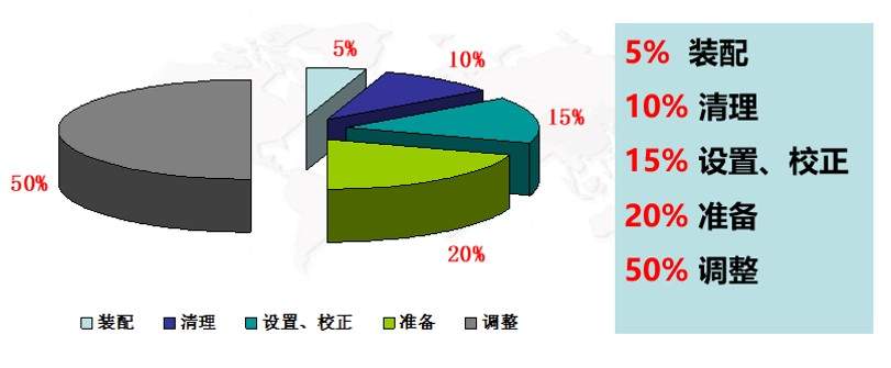 最初使用在汽車制造廠,以達(dá)到快速的模具切換(Exchange of Dies);豐田現(xiàn)場人員經(jīng)過長期探索,將沖壓工序沖床模具裝換調(diào)整所需時(shí)間,從1945年至1954年的3小時(shí),縮短為1970年以后的3分鐘,現(xiàn)在,豐田汽車公司利用設(shè)備快速裝換調(diào)整SMED法,所有大中型設(shè)備的裝換調(diào)整作業(yè)均能在10分鐘之內(nèi)完成。企業(yè)產(chǎn)品切換時(shí)間由4小時(shí)縮短為3分鐘。