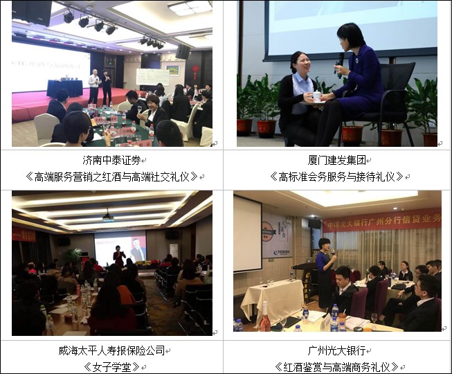 青島日報社、青島電視臺、青島人民廣播電臺、青島新聞網(wǎng)、帆船賽世界杯、青島市海洋節(jié)、青島國際帆船、中國石化、中國銀行、招商銀行、勞斯萊斯、賓利、奔馳、本田、海信集團、海爾集團、一汽大眾、上海市人民政府機關企事業(yè)單位青島市政府、青島市體育局、百名海外院士青島行、克利伯環(huán)球帆船賽青島站、多家國企、民企、上市、跨國企業(yè)及政府單位的危機公關和高端服務禮儀特聘講師/顧問。