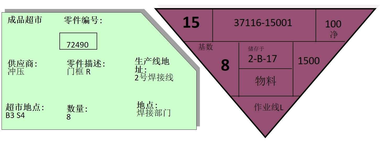 6.配送人員從超市補(bǔ)充材料到生產(chǎn)線,同時(shí)取出超市零件容器中的看板(看板交換.)