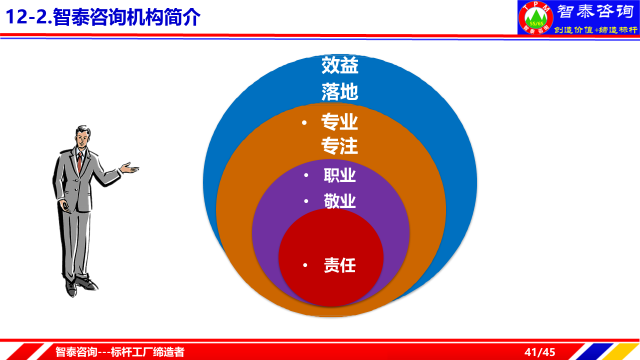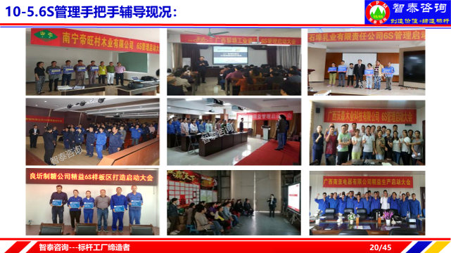 智泰咨詢機(jī)構(gòu)提供專業(yè)的5S管理,6S管理,TPM管理,精益生產(chǎn)管理的咨詢與培訓(xùn)服務(wù);我們有一批從事企業(yè)管理咨詢20年以上的資深顧問,他們行業(yè)經(jīng)驗(yàn)豐富,成功案例多,是真正落地的咨詢機(jī)構(gòu),我們給企業(yè)打造一流的目視化現(xiàn)場管理,確保企業(yè)隨時(shí)可參觀可審廠,提高企業(yè)的效率和品質(zhì),降低企業(yè)成本,我們幫您解決企業(yè)管理的一切問題!