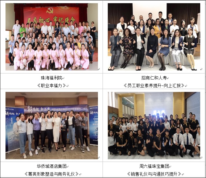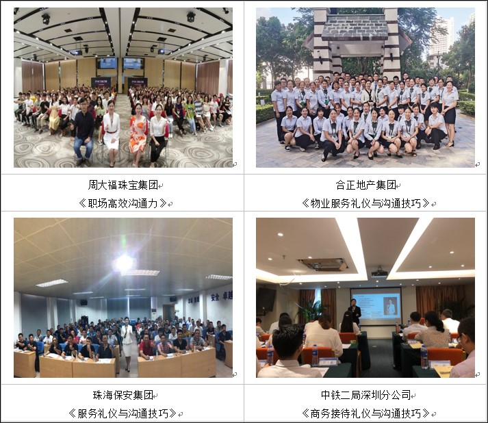 ▲ 曾為周大福集團員工中層正副職和基層員工進行《職場高效溝通力》課程培訓,將職場角色及課程核心知識點融入,幫助員工提升職場溝通能力,得到企業(yè)的一致好評,現(xiàn)場直接加設(shè)《商務(wù)菁英形象塑造與接待禮儀》課程。