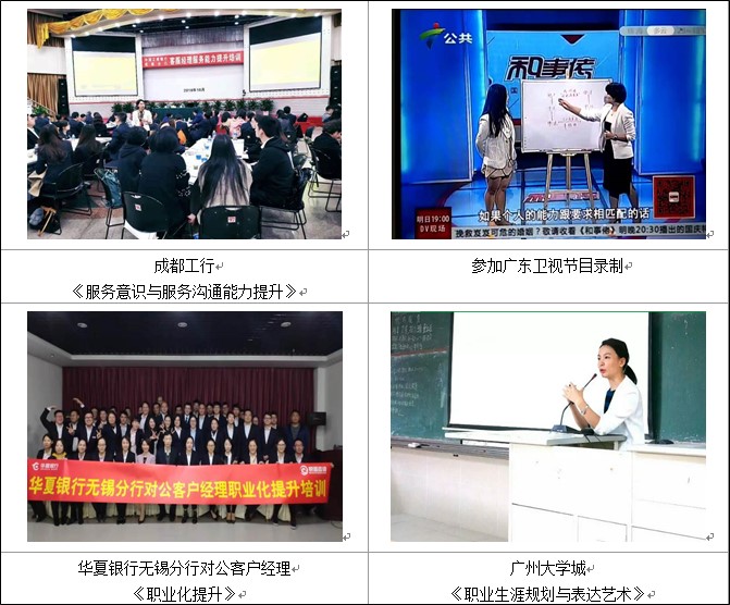 羅姝老師作為項(xiàng)目顧問先后為移動(dòng)、電力、銀行提供過人才培養(yǎng)體系搭建、課程設(shè)計(jì)與開發(fā)、服務(wù)營(yíng)銷咨詢;2015——2019年間,作為專職老師主要進(jìn)行銀行業(yè)的培訓(xùn)及咨詢工作,合作客戶