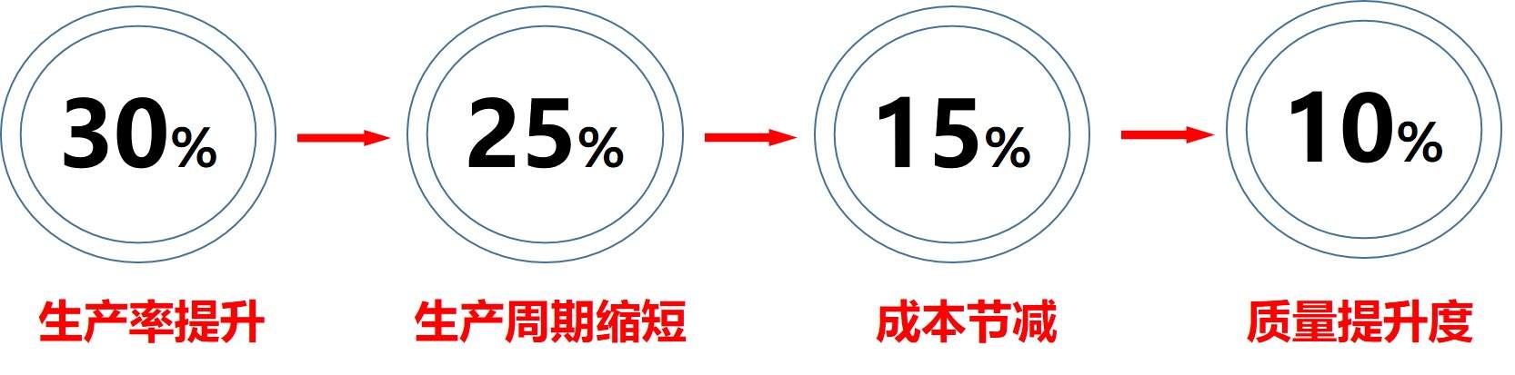 生產效率提升50%以上;產品質量提升度30%以上;生產經營成本下降10%以上;設備故障率下降70%以上---確保成為行業(yè)標桿和最高競爭力企業(yè)。